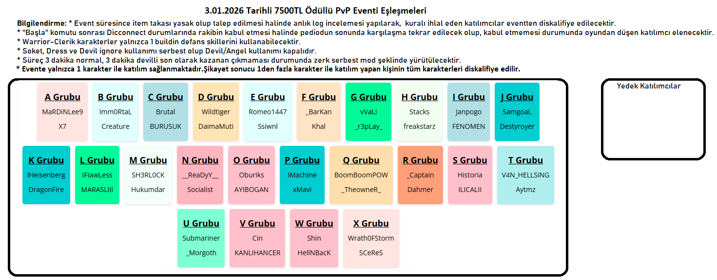 Ek olarak son zamanlarda oyun içerisinden bizlere ulasan oyuncu taleplerine dair bir açiklama yapilmasi gerekli kilinmistir.Buna göre oyun kurallarimizda yer almayan